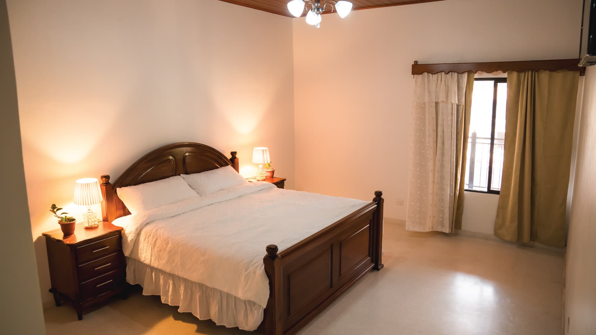 La habitación sencilla cuenta con una cama King size, un desayuno incluido, ademas esta habitación cuenta con servicios de Wi-Fi, Smart tv, Aire Acondicionado y baño con ducha eléctrica.