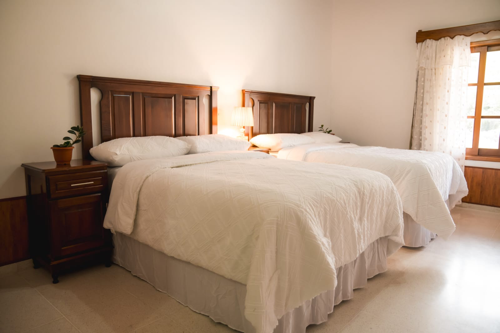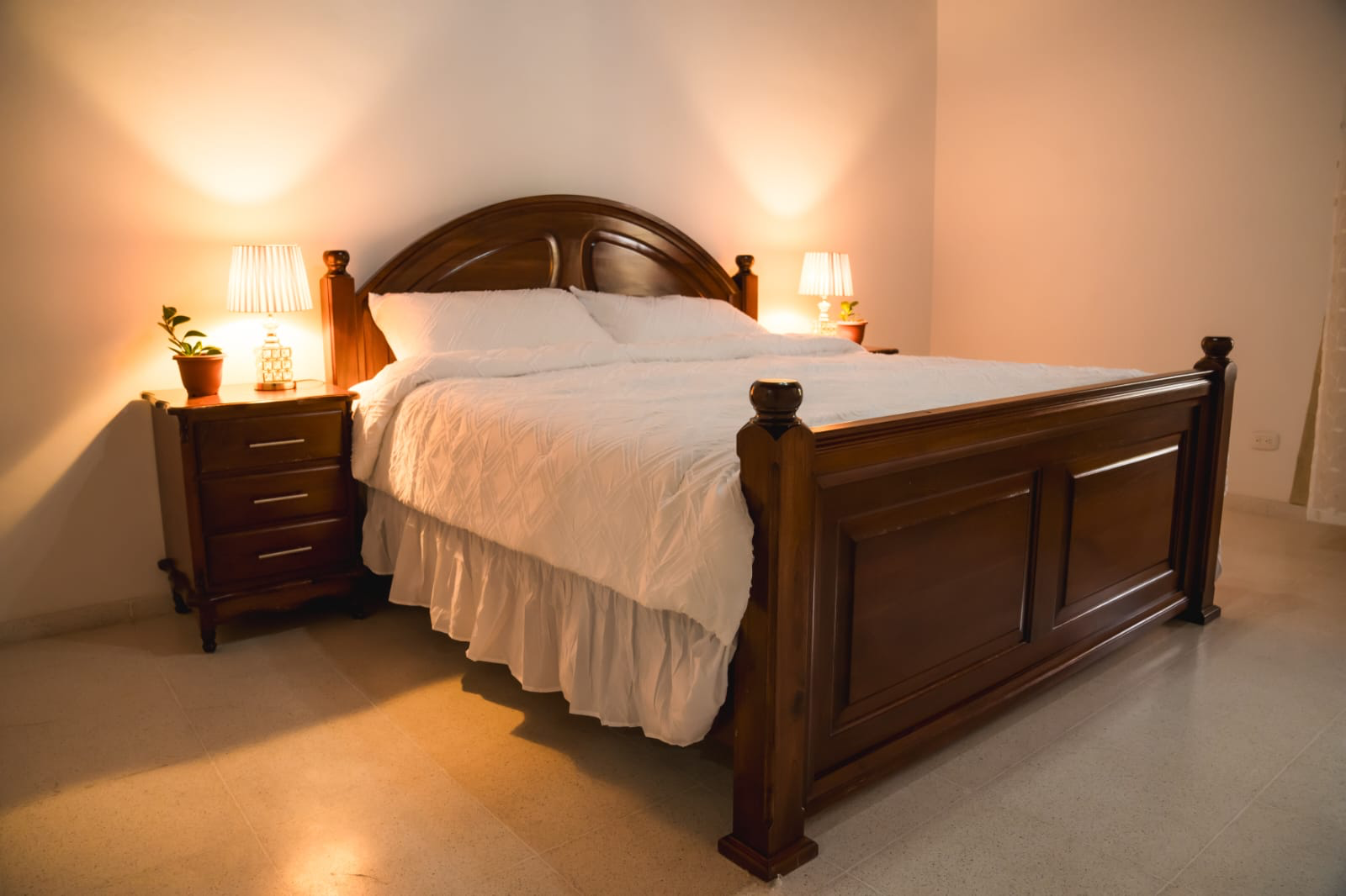 La habitación doble cuenta con una cama King size, dos desayunos, además esta habitación cuenta con una sala, comedor, cocina, bañera, servicios de Wi-Fi, Smart tv, Aire Acondicionado y sistema de agua caliente.